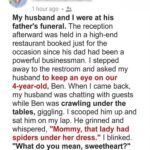 When I found him moments later, his expression was strangely serious. He tugged on my dress and whispered, “Mommy, I saw Daddy touch another lady’s leg.”